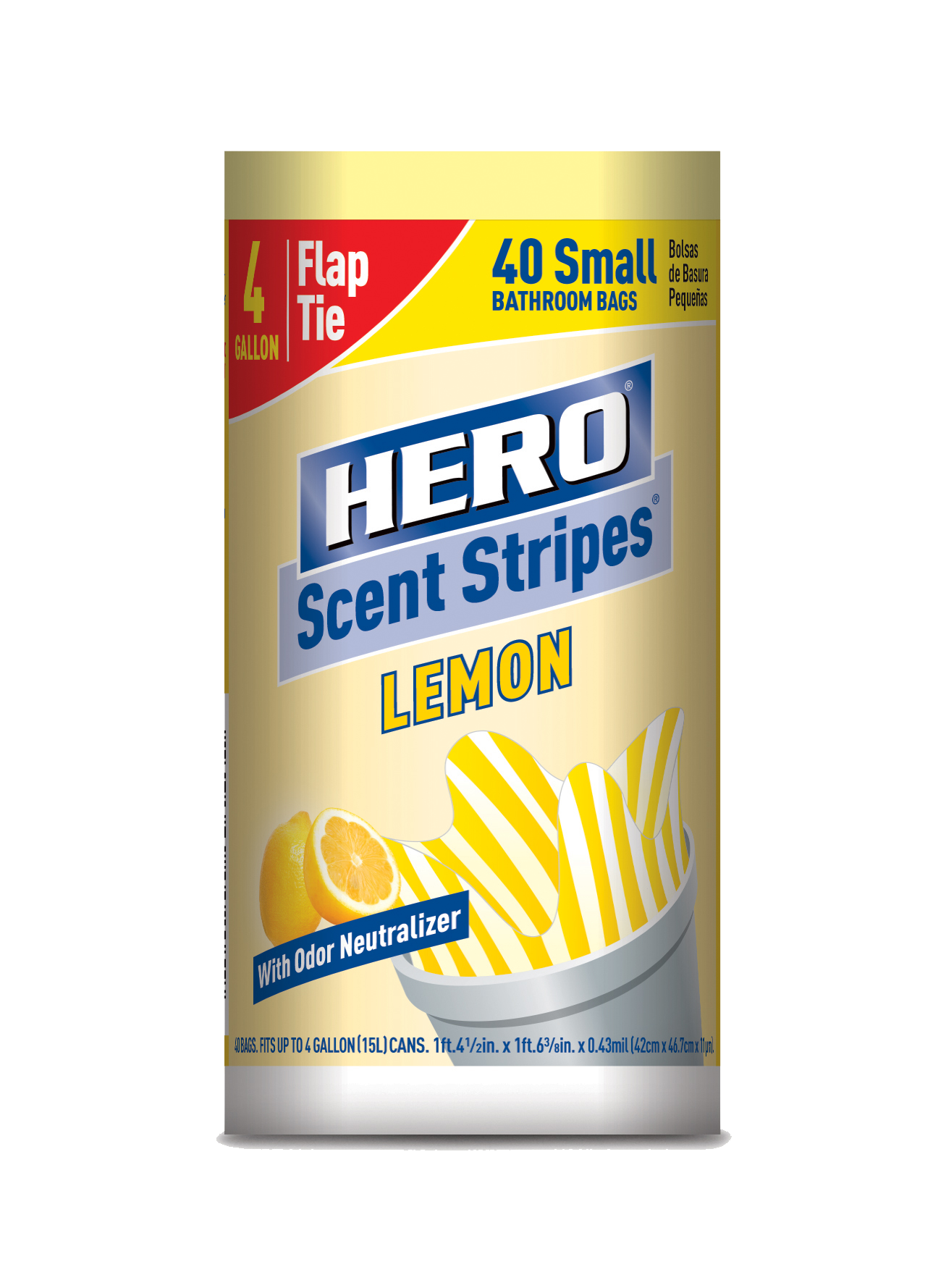 Hero Scent Stripes Lemon Small Flap Tie Bags , 4 Gallon, 40 Ct